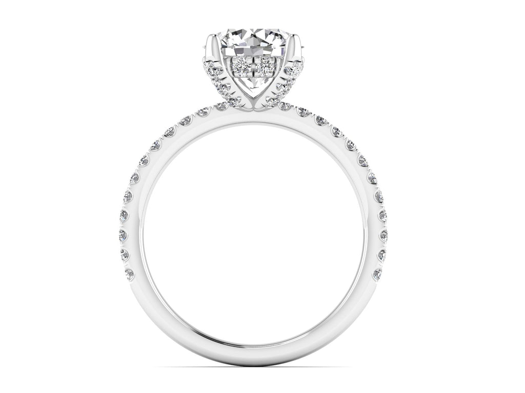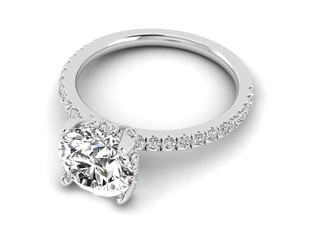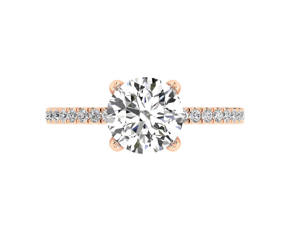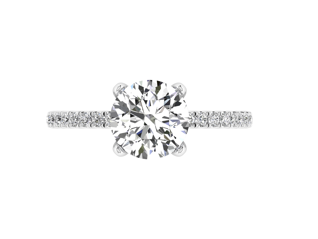 Introducing our Solitaire, Pavé Engagement Ring, featuring a round shape White Diamond at its center.