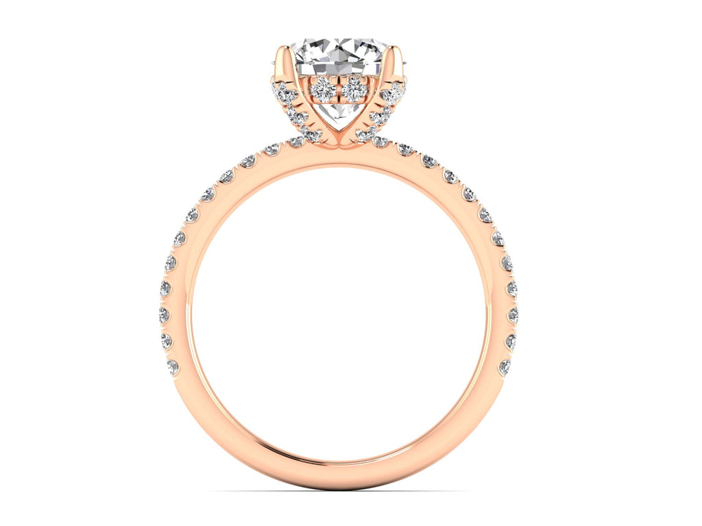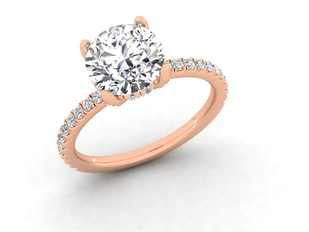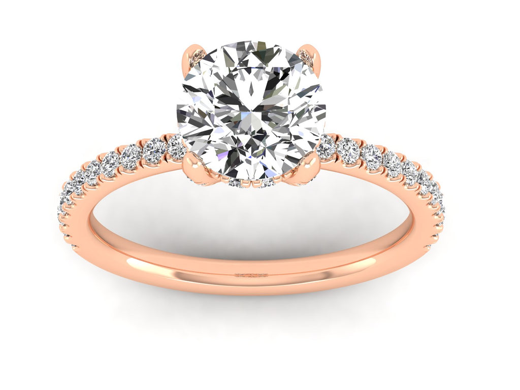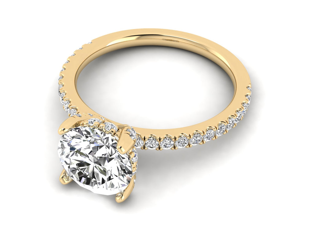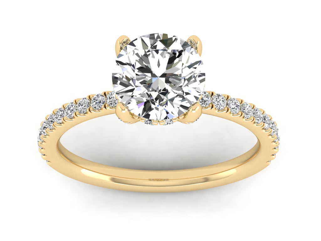 Introducing our Solitaire, Pavé Engagement Ring, featuring a round shape White Diamond at its center.