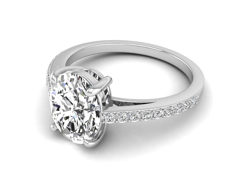 Indulge in the ultimate symbol of love and commitment with our Solitaire, Pavé Engagement Ring.