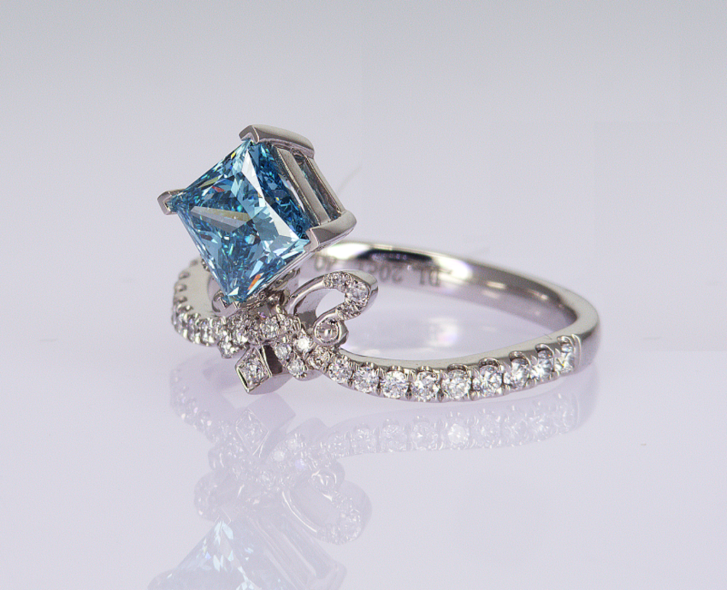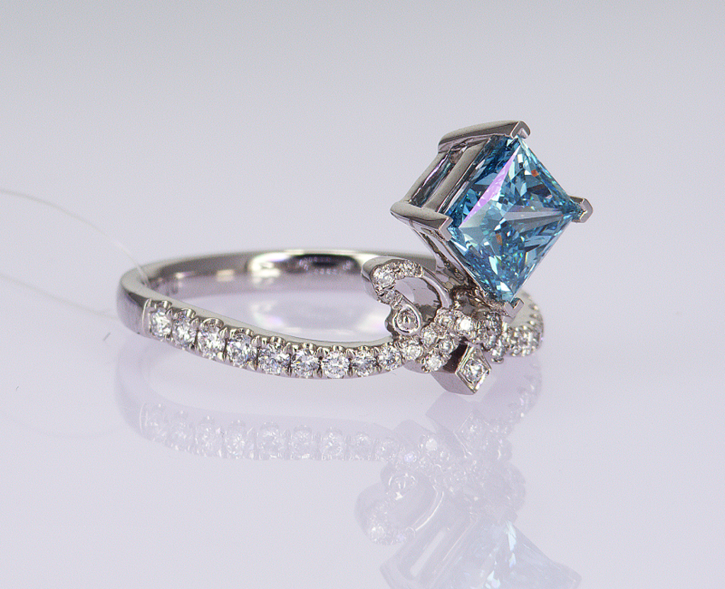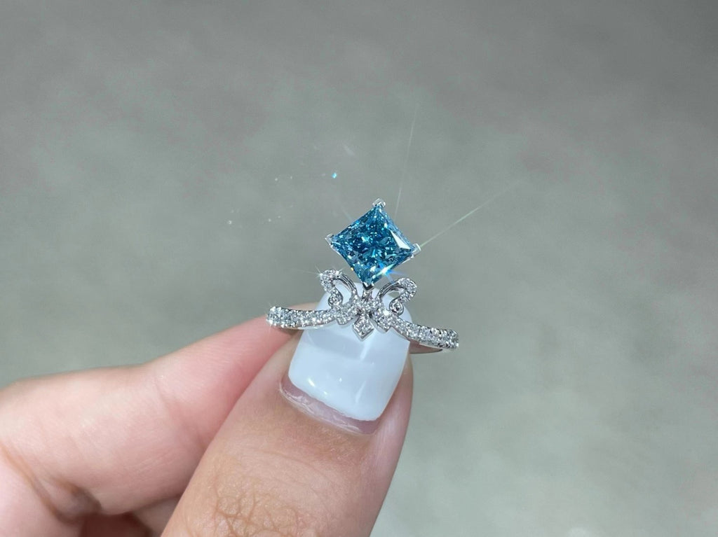 Butterfly Crown Ring - Intense Blue Princess Diamond - 1.46 ct.