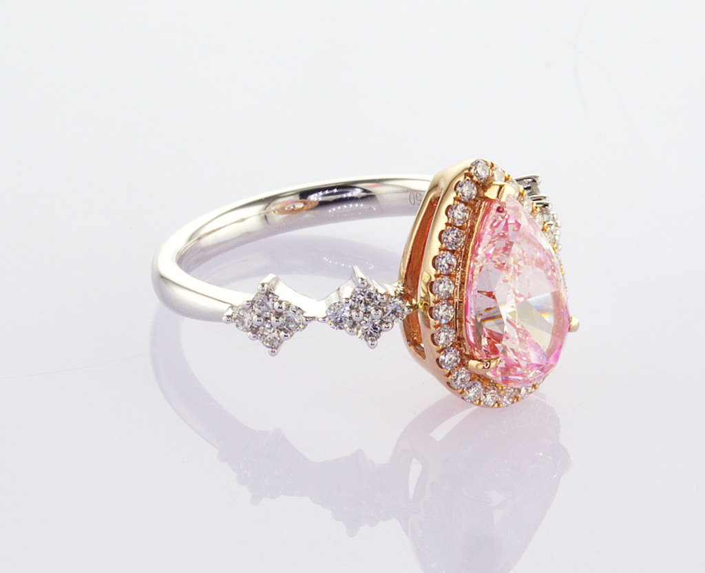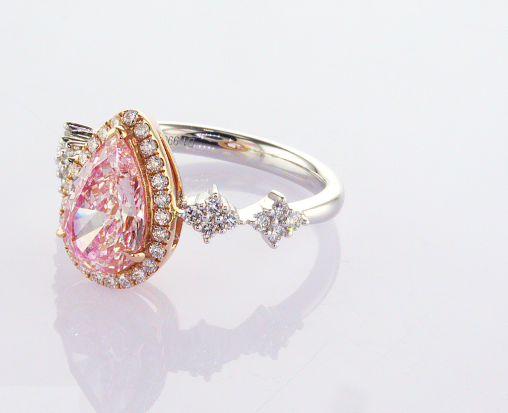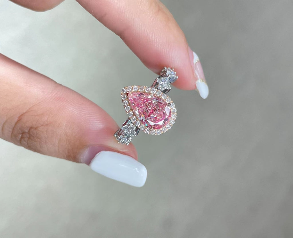 Halo Ring - Intense Pink Pear Diamond - 2.40 ct.