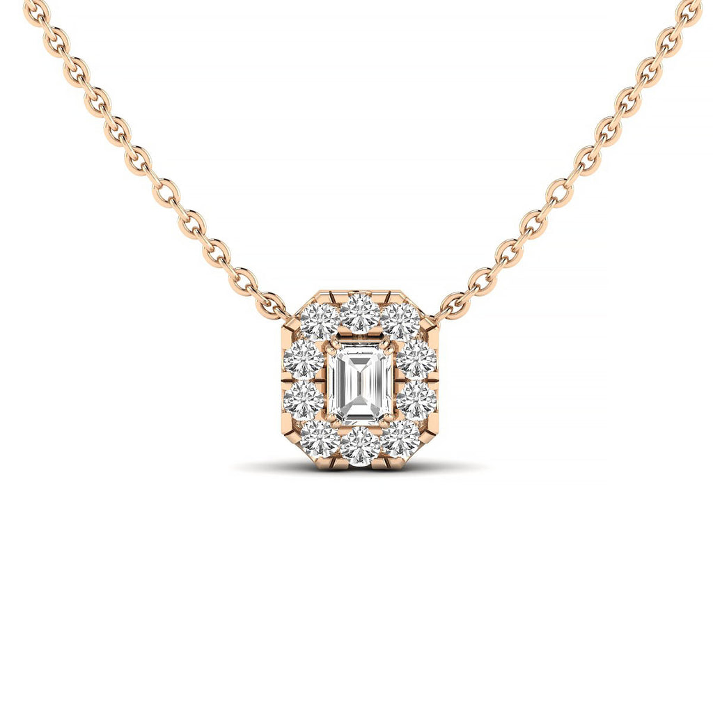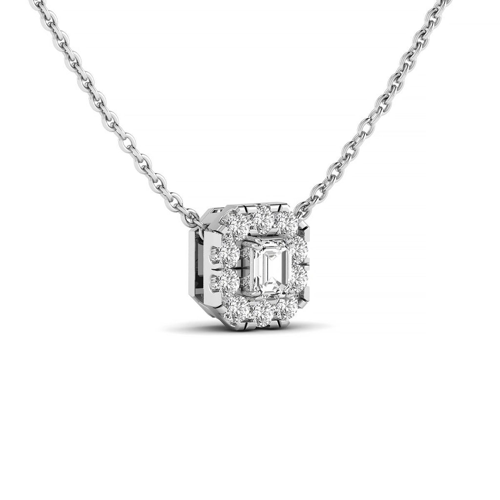 Introducing our Classic Halo Pendant, featuring a stunning 0.50 ct. total weight of diamonds in E - VS1 quality.